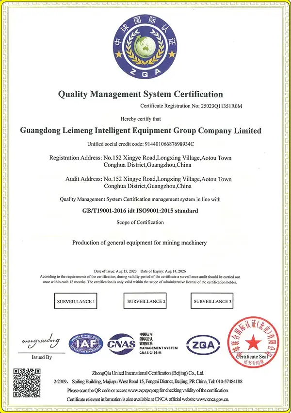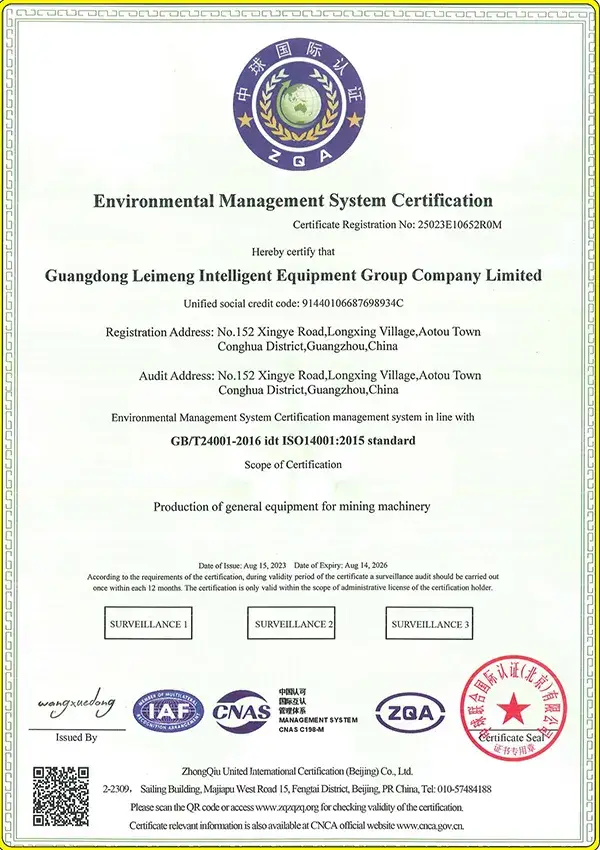 تُعد شركة Leimeng مؤسسة حديثة تمتلك مركزًا متخصصًا للبحث والتطوير، وقد أقامت شراكات مع الجامعات والمؤسسات البحثية. وبفضل التقنيات المتقدمة، تعمل الشركة على حل التحديات الرئيسية في إنتاج الرمل والركام. وقد حصلت حتى الآن على 141 براءة اختراع، منها 42 براءة اختراع، مما يضمن الابتكار المستمر وتحسين جودة المنتجات.