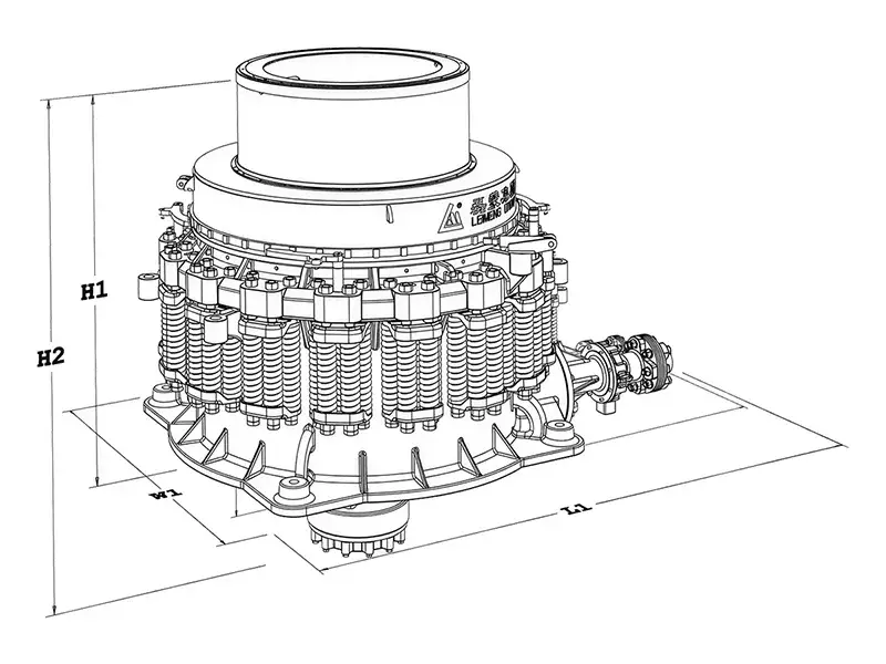 | الطراز | أقصى حجم تغذية (مم) | حجم التفريغ (مم) | قطر المخروط المتحرك (مم) | سرعة العمود (د/دقيقة) | السعة (طن/ساعة) | القدرة (كيلوواط) |